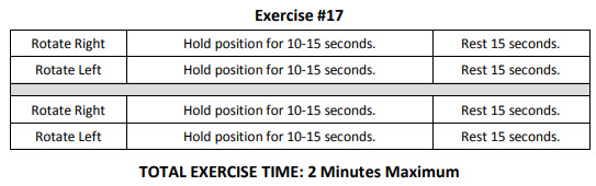 The video shown above demonstrates how to perform this exercise one time while rotated to the left and one time while rotated to the right. The final hold position while rotated to the left is shown in Figure 3-17a below. This position is held for 10-15 seconds using between 70-80% of your maximum strength. The same is then performed while rotated to the right as shown in Figure 3-17b below.
